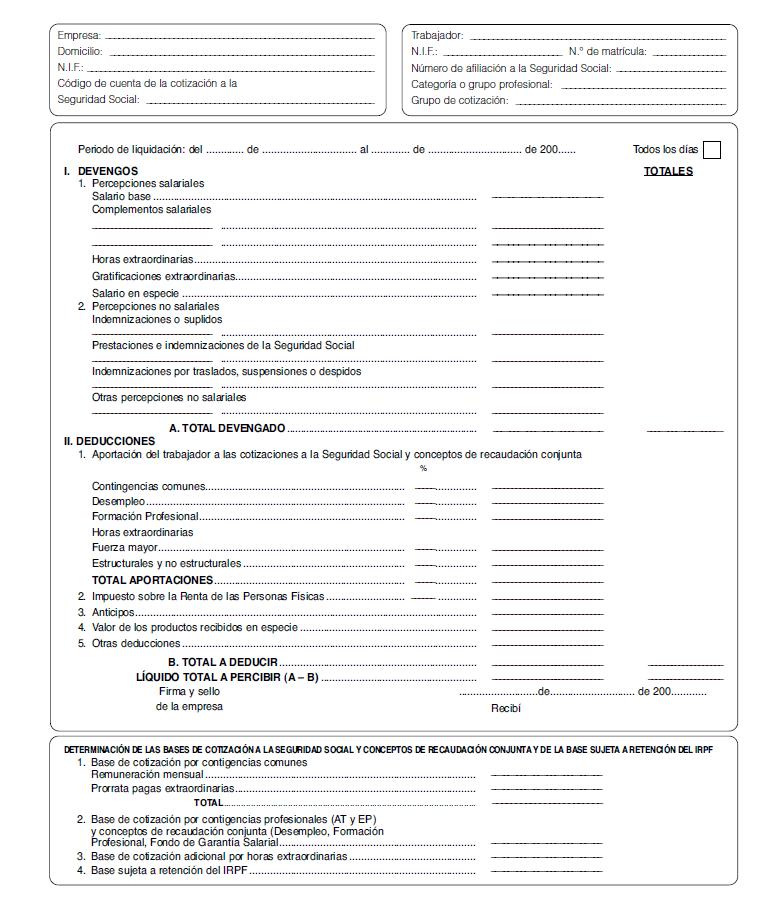 Modelo de nómina en blanco